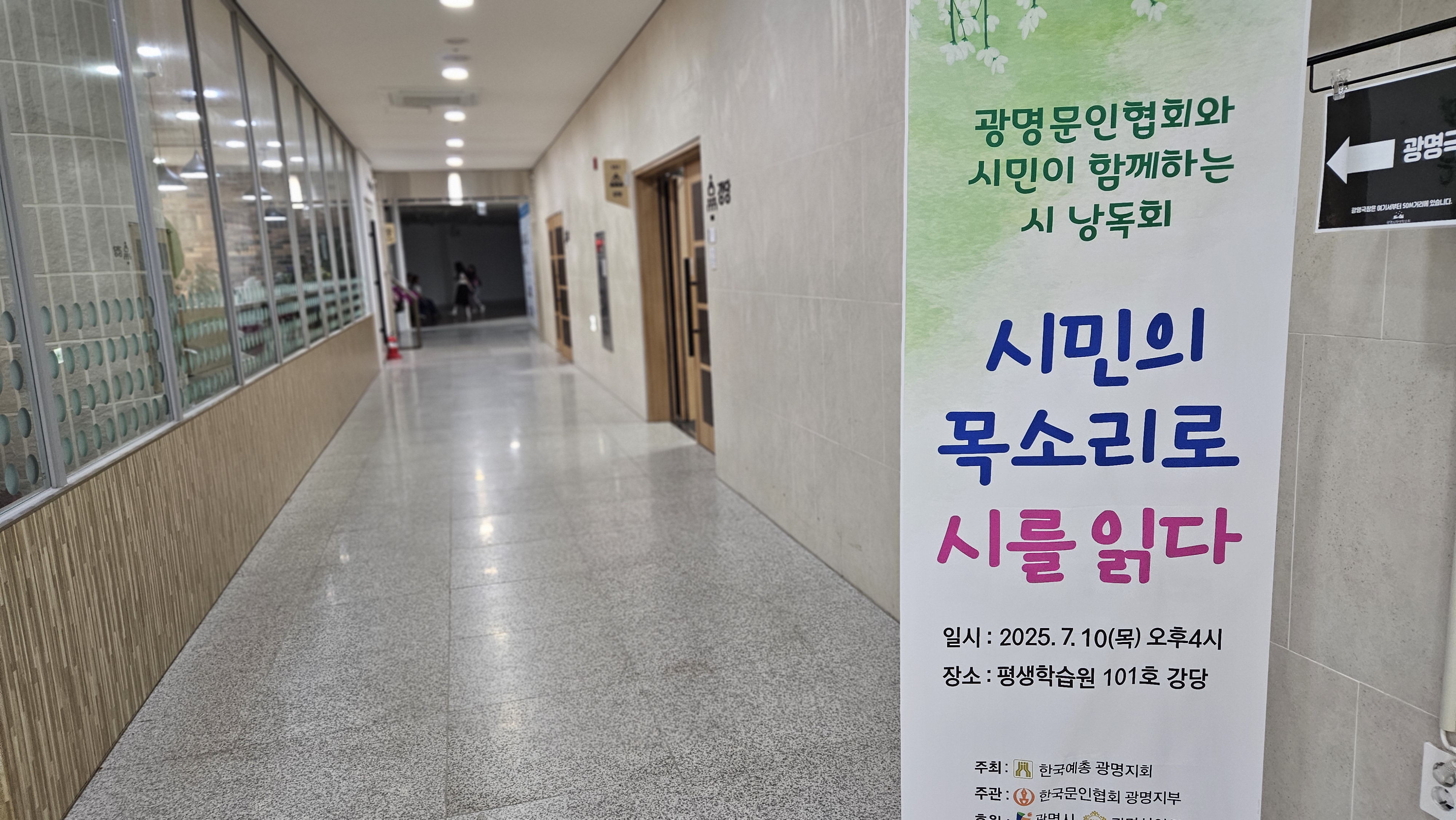 지난 10일 광명시 평생학습원 소극장에서 ‘시민과 함께하는 詩 낭독회’를 (사)한국문인협회 광명지부(회장 박갑순)가 주관하여 큰 행사를 가졌다.